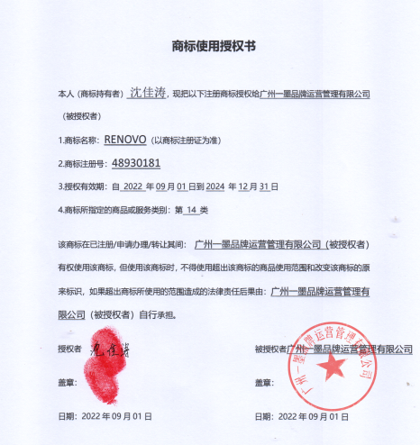 RENOVO是一个钟表品牌,现已授权于广州一墨品牌运营管理有限公司使用,源于德国的普福尔茨海姆,品牌隶属德國羅諾威精密時計控股集團有限公司,是一家集设计,生产制作的钟表企业。